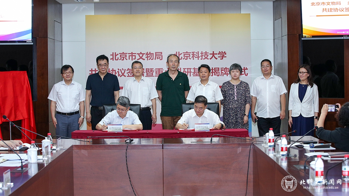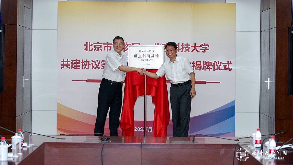 On the morning of July 16th, USTB and the Beijing Municipal Administration of Cultural Heritage held a signing ceremony and unveiling a new key scientific research base of USTB. Mr. CHEN Mingjie, Chancellor and Director of Beijing Municipal Administration of Cultural Heritage, Mr. XIANG Dechun, Associate Director of Beijing Municipal Administration of Cultural Heritage, Mr. WU Guilong, Chancellor of USTB and Prof. ZANG Yong, Vice President of USTB participated in the ceremony.