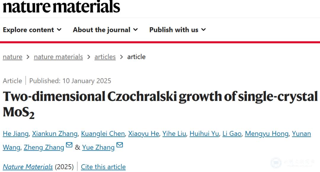 The USTB team proposed a novel two-dimensional Czochralski (2DCZ) growth method, inspired by the classical crystal growth technique used for bulk semiconductors. This new approach enables the controllable growth of ultra-large, single-crystal MoS₂ domains with low defect density and excellent uniformity—marking an important step toward industrial-scale production of 2D semiconductors.